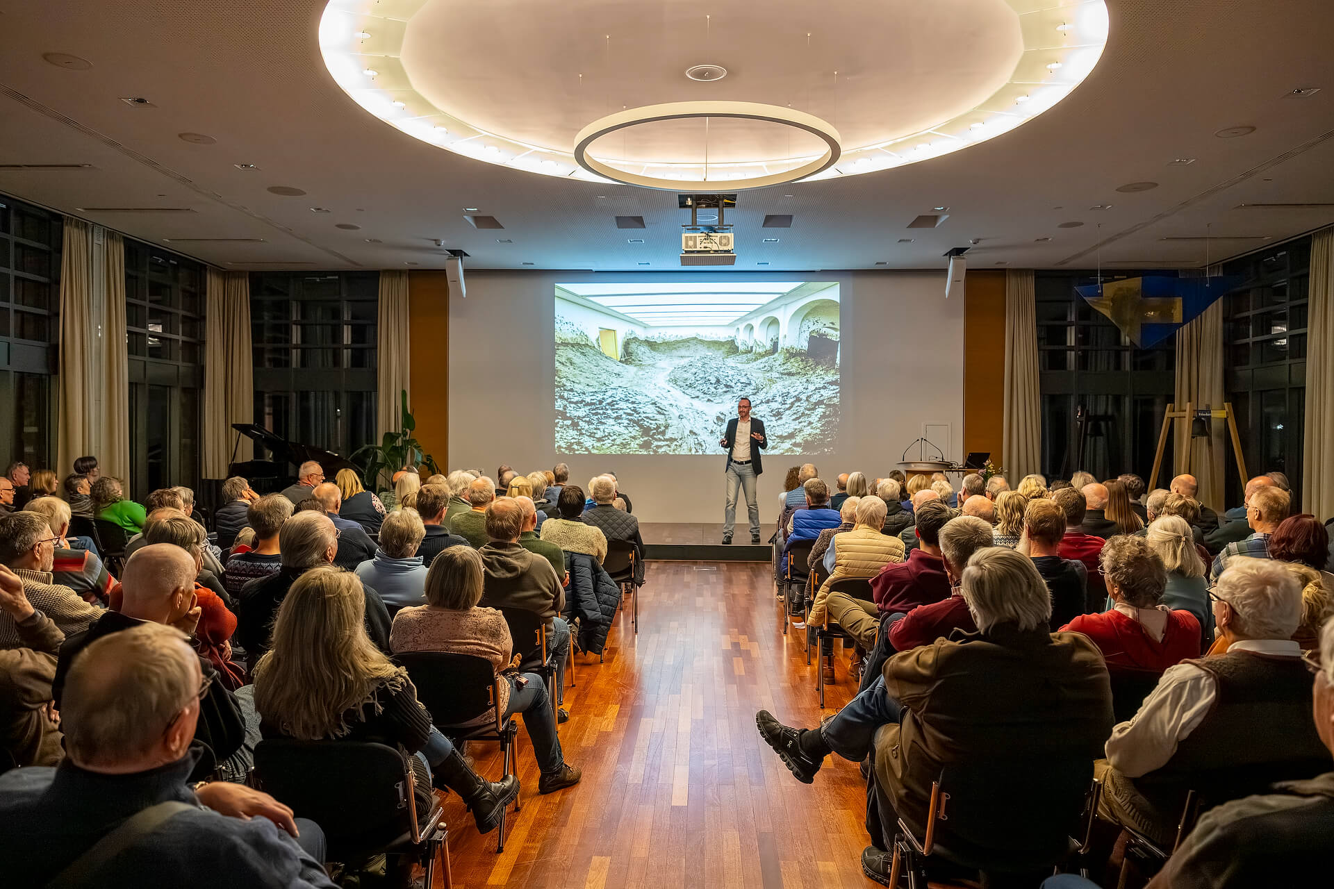 Aufmerksamkeit auf die Flora und Fauna des Oldenburger Münsterlandes lenken und für deren Schutz und Erhalt werben: Das hat Willi Rolfes schon seit Jahren zu einer Kernaufgabe seiner fotografischen Arbeit gemacht. Die Hunte und die Ahlhorner Fischteiche, das Goldensteder Moor und der Dümmer – schon in zahlreichen Bildbänden portraitierte er die Schönheit und Vielfalt der heimischen Natur, mit ihrer Kraft und in ihrer Zerbrechlichkeit. Das aktuellste Projekt ist die „Hase“, der er mit der Kamera von den Quellen im Teutoburger Wald bis zur Mündung in die Ems bei Meppen folgte. In Stapelfeld zeigte und erklärte er in fünf Etappen, wie der kleine Fluss nach der Eiszeit entstand und wo landschaftliche Relikte bis heute sichtbar sind. Er skizzierte den Verlauf des Flussbettes mit den örtlichen Besonderheiten, berichtete wie die Hase früher kanalisiert und begradigt wurde und wo inzwischen Renaturierungen, Deichdurchbrüche, Altarm-Anschlüsse und Überflutungs-Biotope neue Lebensräume geschaffen haben – Leben pur im, am, unter und über dem Wasser. Eisvögel und Graugänse, Prachtlibellen, Lachse, Otter und vieles mehr ist in und an der Hase zu Hause – eine Lebensader, die es zu schützen gilt.